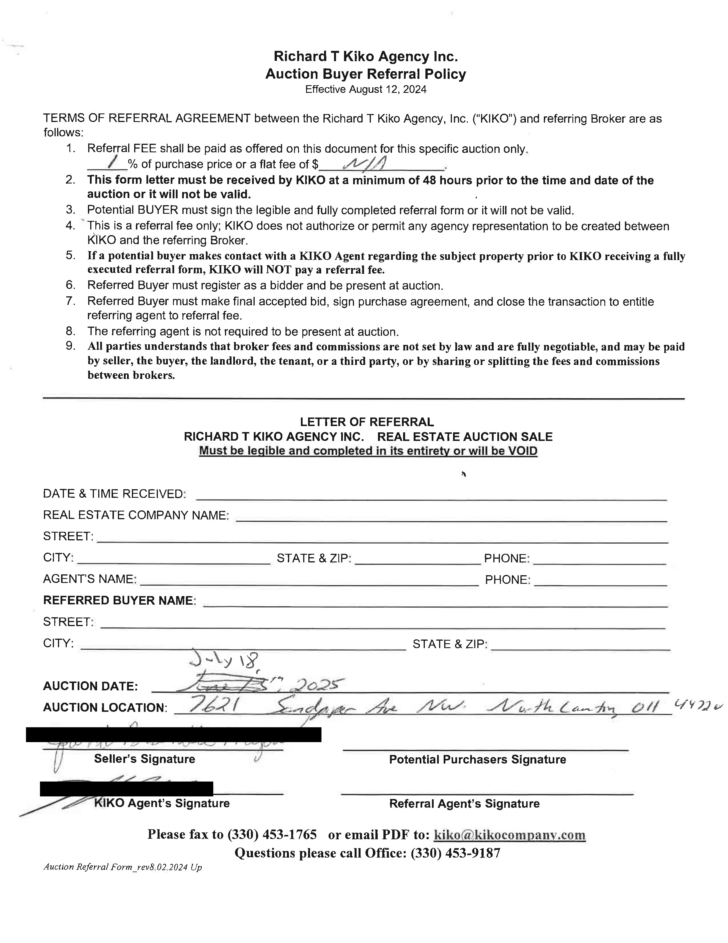 10% down auction day, balance due at closing. A 10% buyer’s premium will be added to the highest bid to establish the purchase price. Any desired inspections must be made prior to bidding. All information contained herein was derived from sources believed to be correct. Information is believed to be accurate but not guaranteed.
